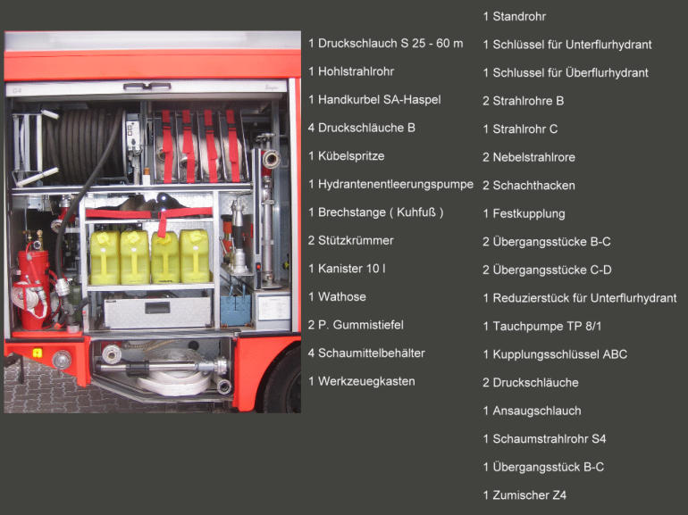 Standardbeladung mit Löschmitteln, Löschwassertank 1600 l