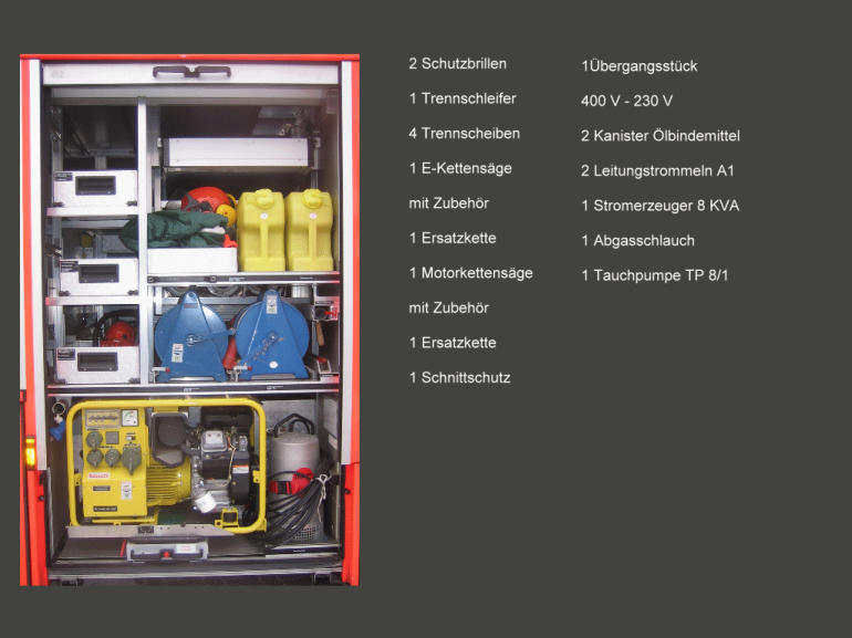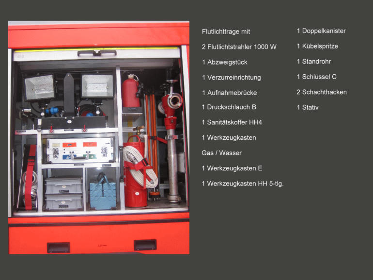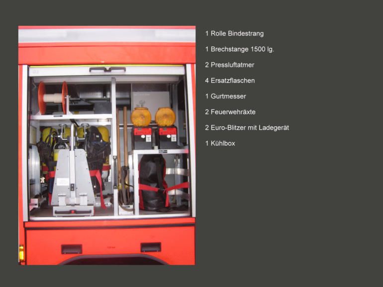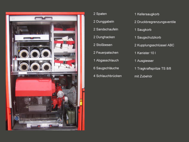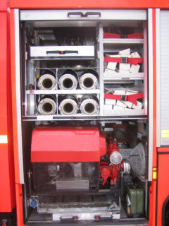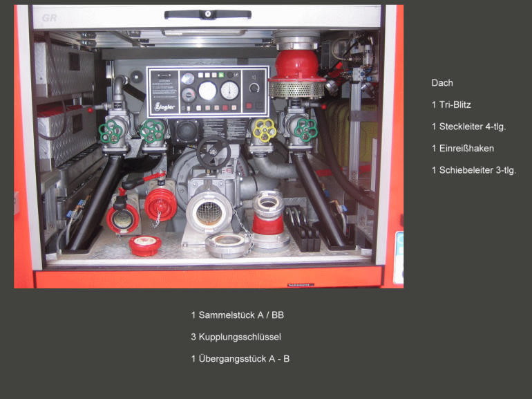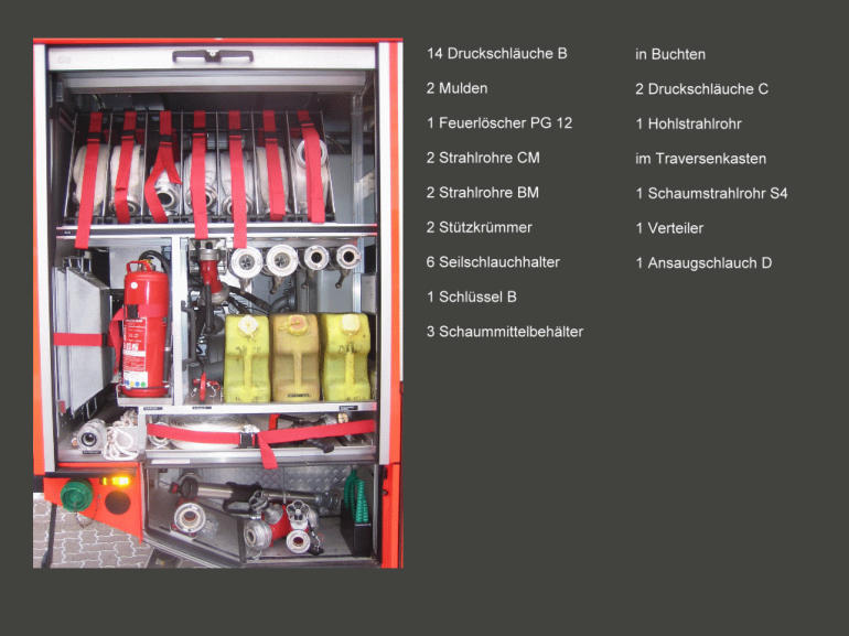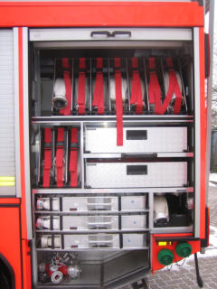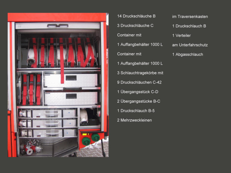 Ziegler Löschwassertank 1600 l Wasser, insges. 30 B-Schläuche u. 14 C-Schläuche an Bord,